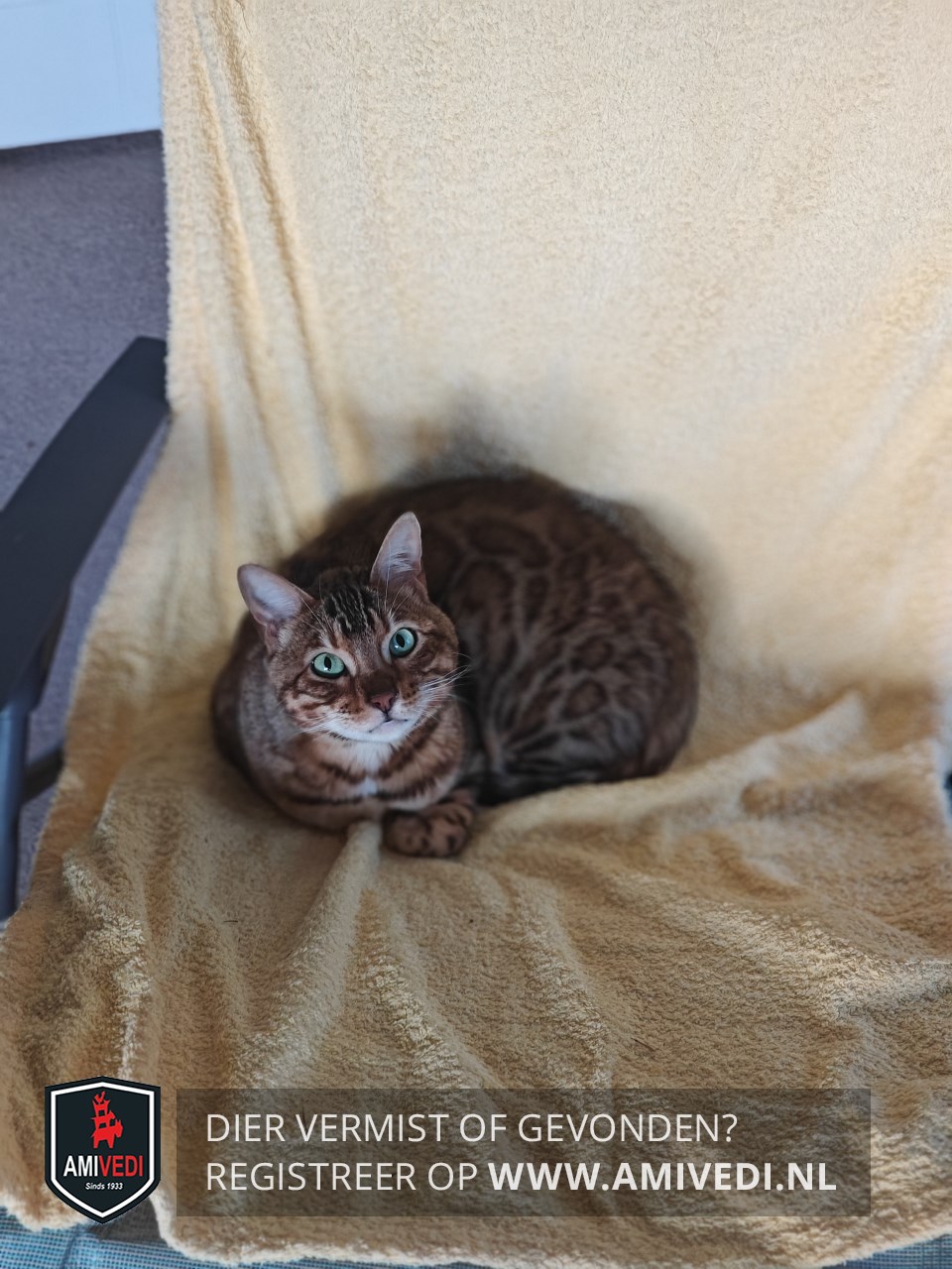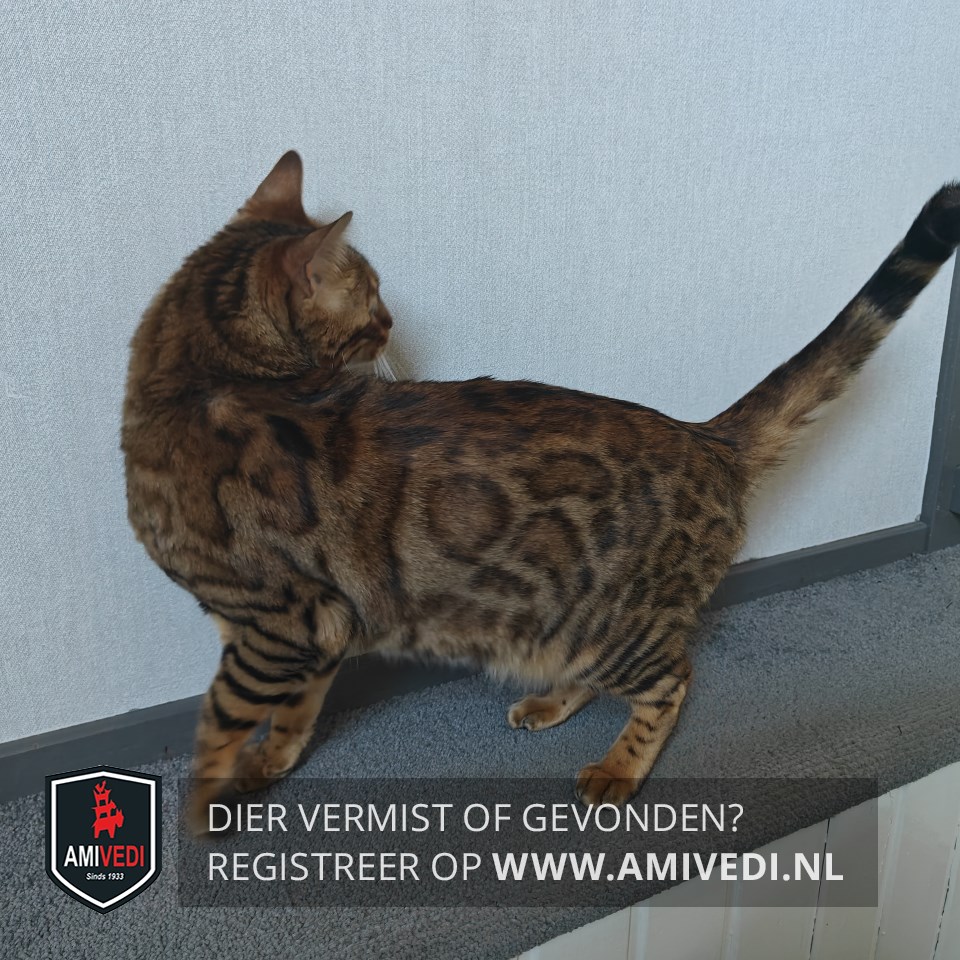 | Signalement | Bengaal, getekend met panterprint. Licht (wit) gekleurd rondom de bek en kin. |