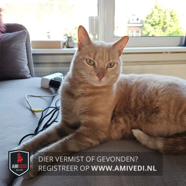 | Signalement | Oranje beige kater, aan de dikkere kant. I.v.m. plas/blaasproblemen geen geslachtsdeel meer. Krijgt dieetvoer. Licht gekleurd rond de mond en licht gekleurd puntje van de staart. |