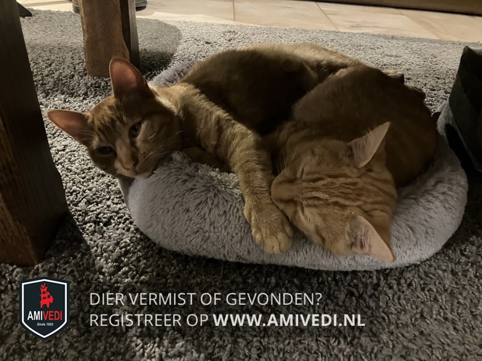 | Signalement | Cypers rood/oranje. Nikkie is iets groter dan zijn broertje Siepie (melding 2212792). Beide vermist. |