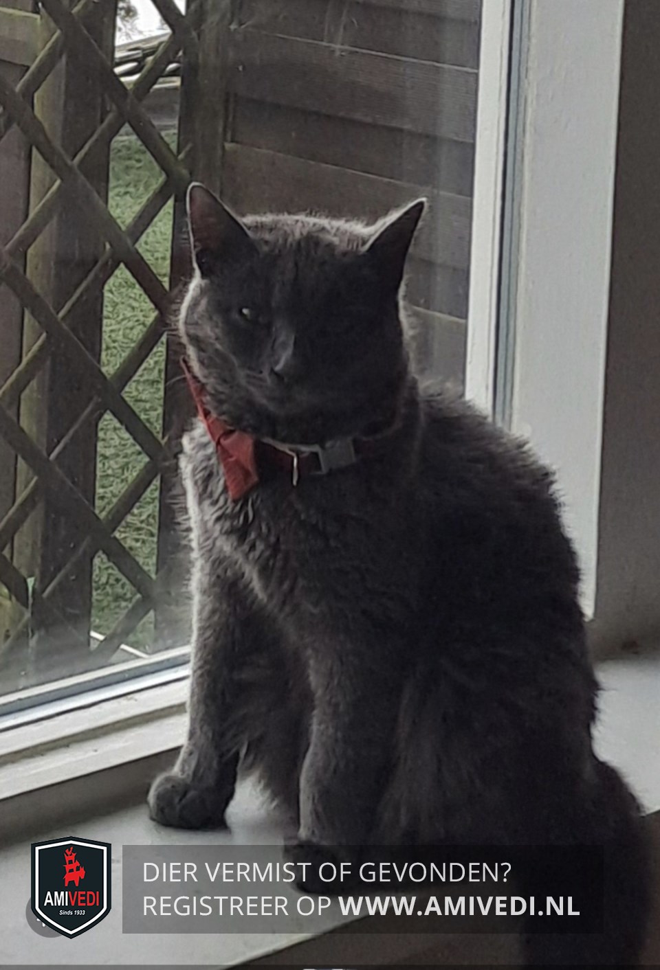 | Signalement | Geheel grijs en ZONDER halsbandje zoals op de foto |