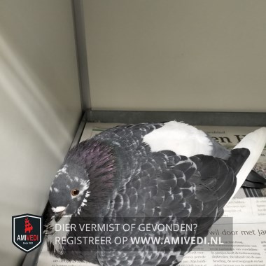 | Signalement | Sierduif, kopje, borst en vleugels donkergrijs, vleugelpunten en staart wit |