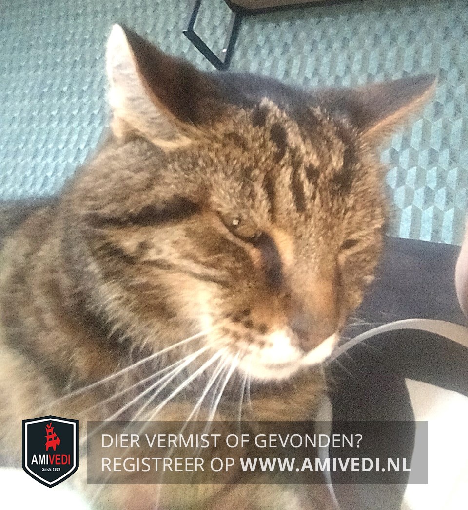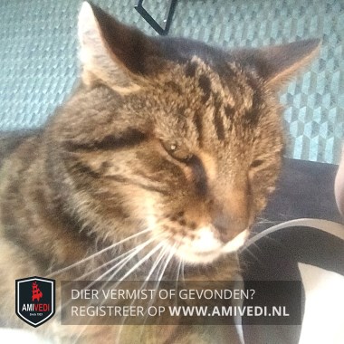 | Signalement | Cyperse bruin-zwart gestreepte kater. Aan de magere kant ivm schildklierproblemen hiervoor medicatie. |