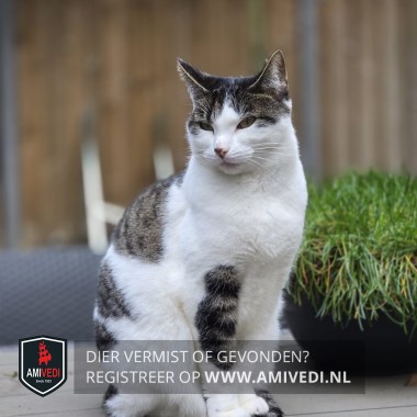 | Signalement | Wit met cypers grijs zwart.. Cypers kopje. Witte bles en snuitje. Witte hals, borst, buik, schouders, heupen en pootjes. Cyperse vlek op rechter voorpootje. Op de rug cypers. Staart grijs zwart. |