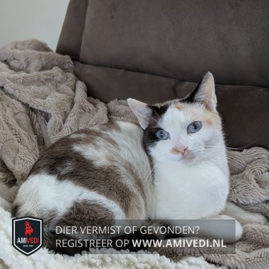 | Signalement | Vera is een kruising Ragdoll/Europese kat. Wit met zwart rond oren en buitenkant rechteroog. Licht bruin/beige boven rechteroog en vlekjes naast en onder neusje. Beige/bruine vlekken op rug. Zwarte staart met bruine aanzet en bruin puntje uiteinde. Blauwe ogen. |