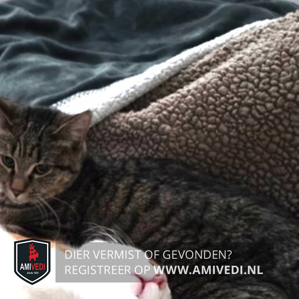 | Signalement | Bruin-grijs gecyperd, Lichter rond het bekje. Vrij schuw. Heeft dieetvoeding nodig i.v.m. braken. |