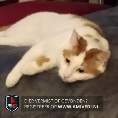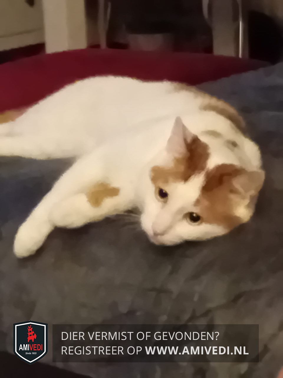 | Signalement | Witte keter met rode vlekken bij de oren, witte oorrandjes, rood vlekje op de linker voorpoot, rode vlekken op de rug, cypersrode staart. |