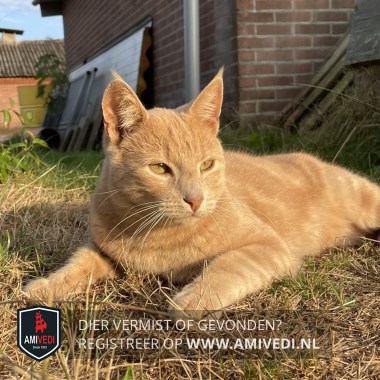 | Signalement | Volledig cyperse lichtrood/oranje kater. |