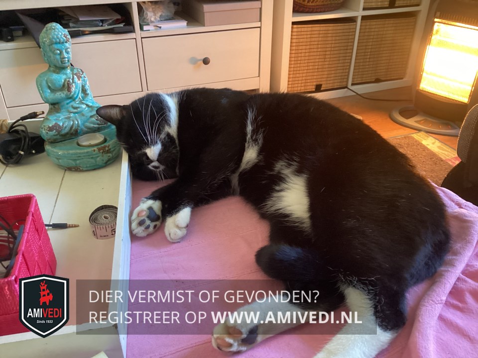 | Signalement | Teun is een tuxido kater met een wit snoetje en een zwarte stip op zijn snuitje. Een zwart bekje. Witte borst en voetjes |