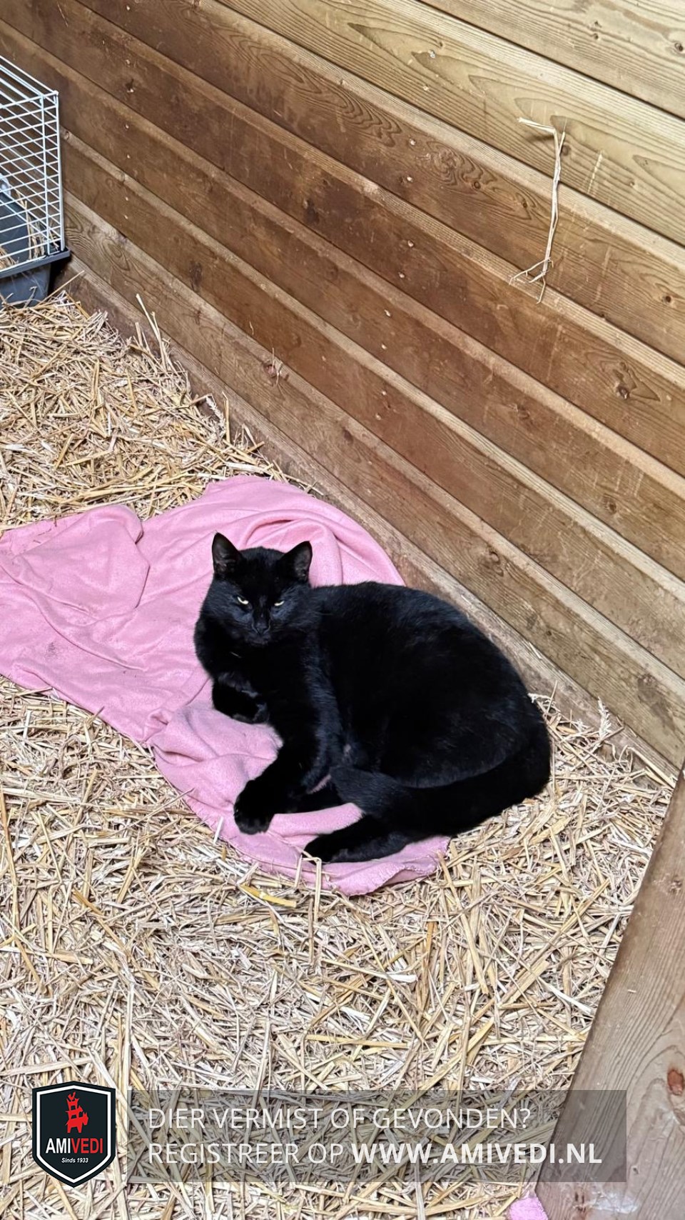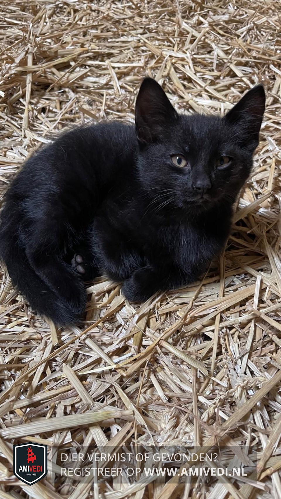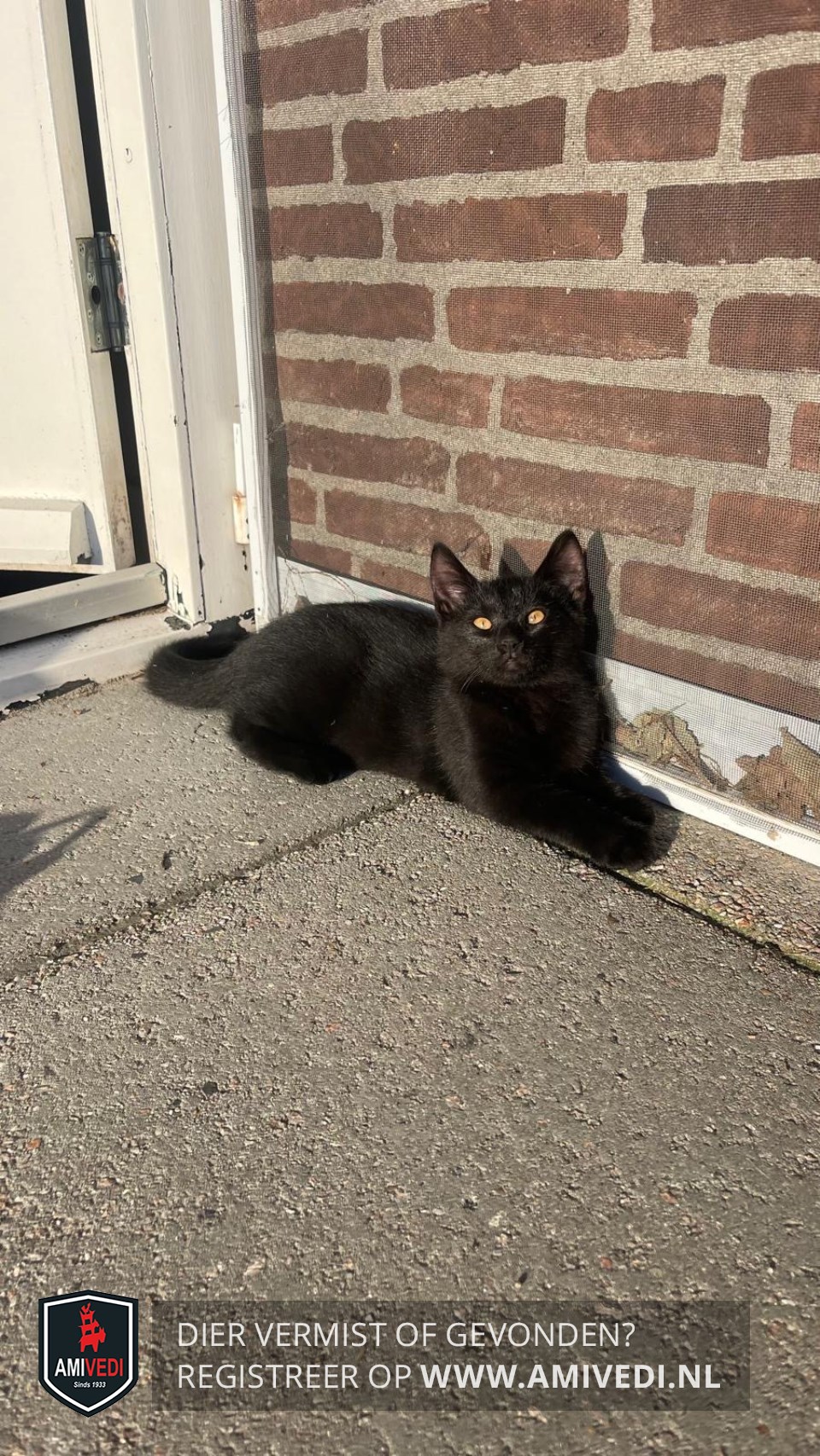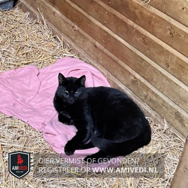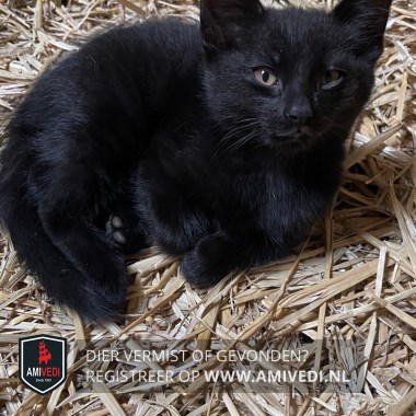 | Signalement | Geheel zwart met een paar witte haartjes op de borst. |