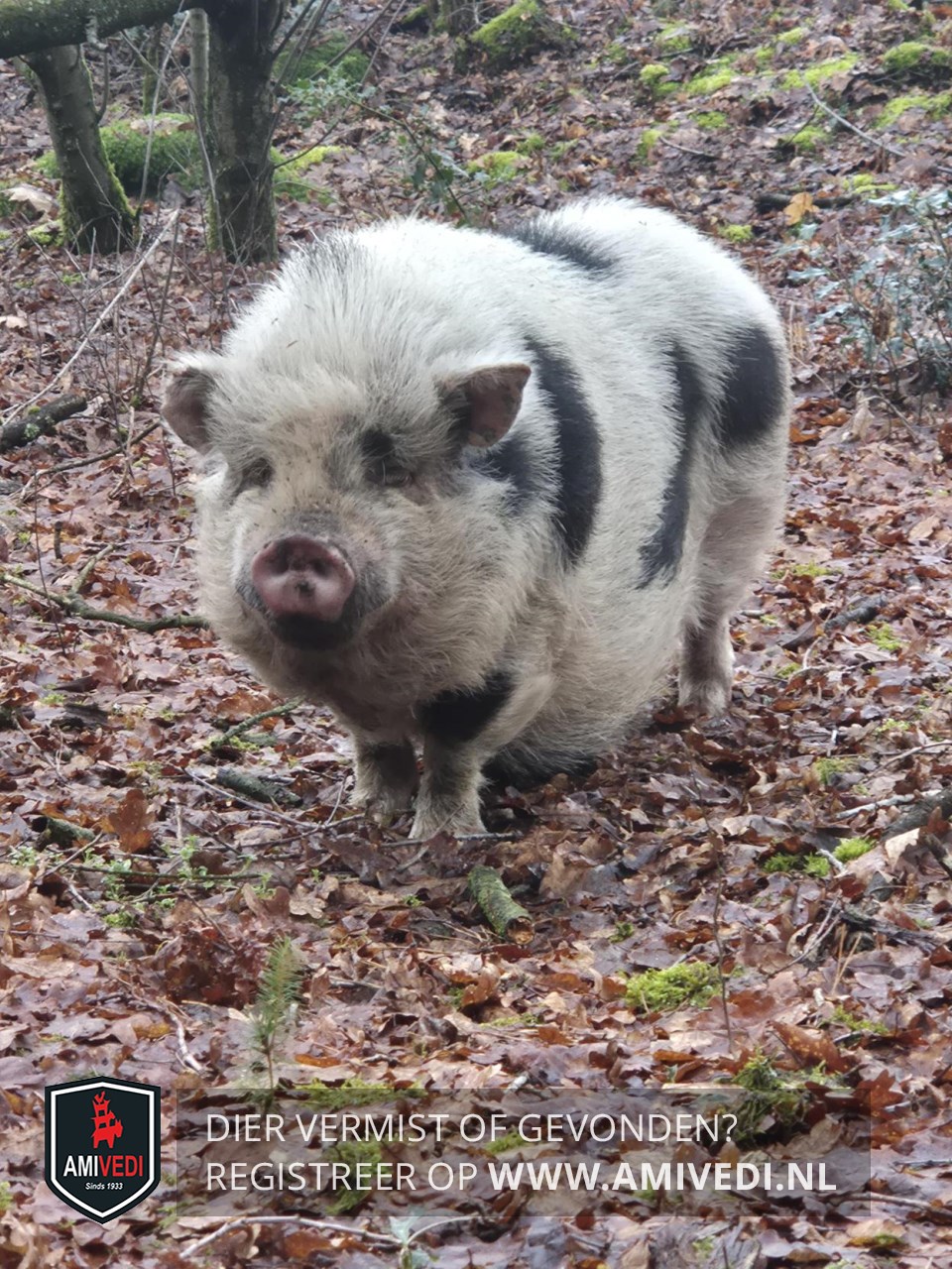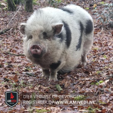 | Signalement | Varken, wit met zwarte vlekken. Ruwharig. Witte kop, roze snuit en zwart vlekje boven linkeroog. Wit lijf met enkele zwarte vlekken. |