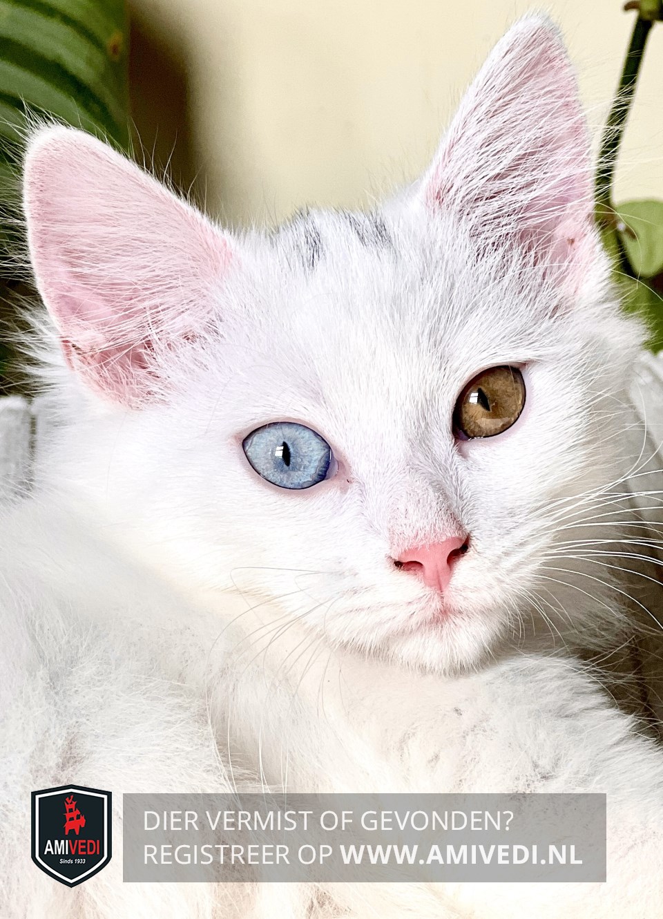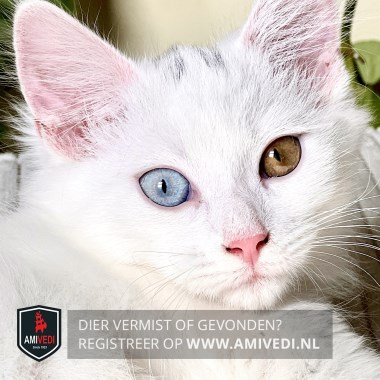 | Signalement | Volledig wit. Lijkt op een Maine Coone met Odd-eyes. Rechteroog is blauw, linkeroog is bruin. |