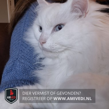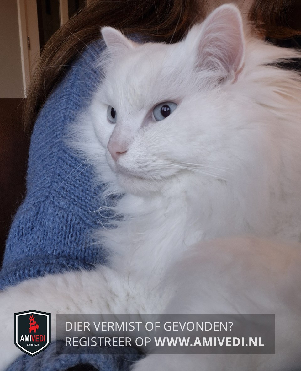 | Signalement | Grote pluizige witte kat met blauwe ogen. |