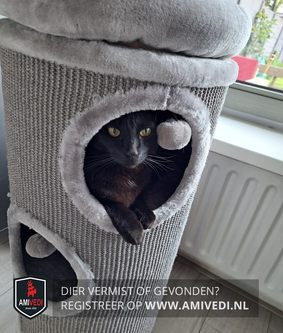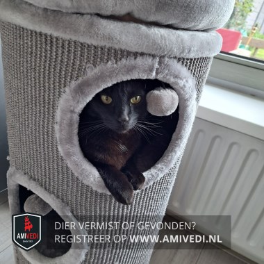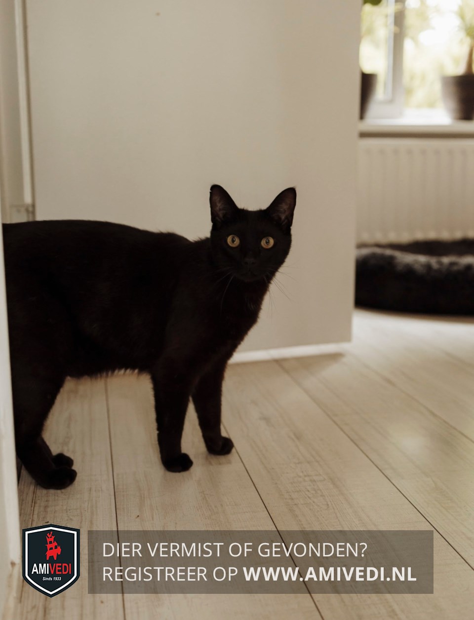 | Signalement | Zwarte kater met op zijn borst een klein wit vlekje. Heeft in een oor een klein "knipje" maar dat is een litteken. |