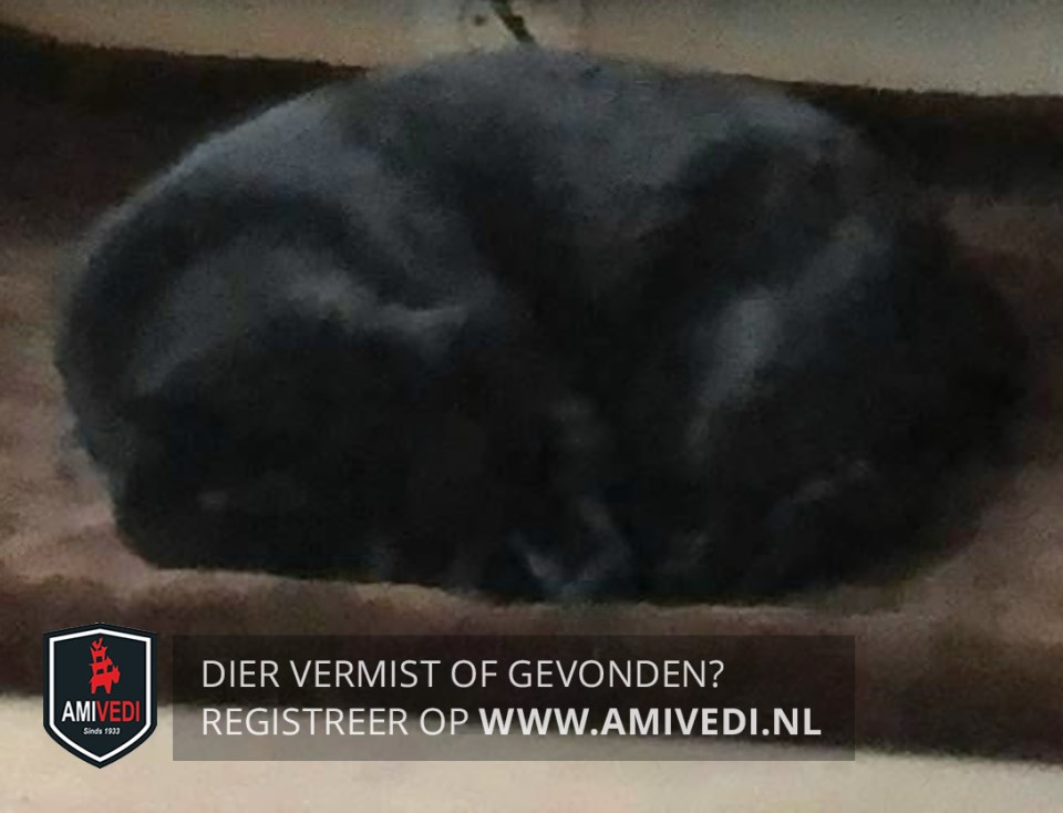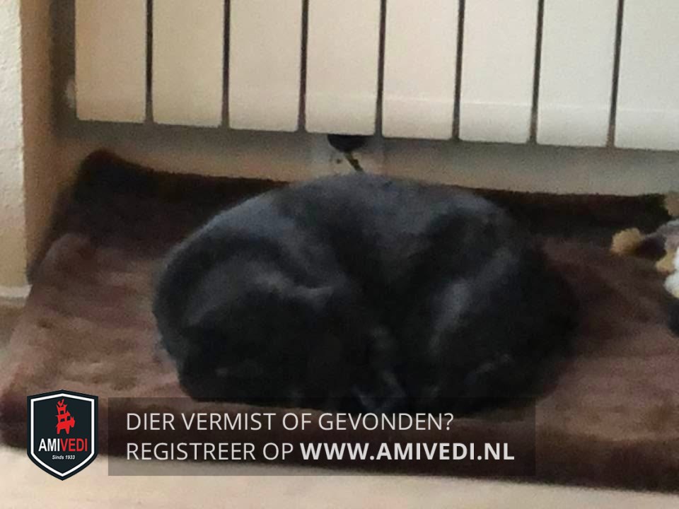 | Signalement | Grote, gespierde, geheel zwarte kater. Hap uit 1 oor. Vrij korte staart. |