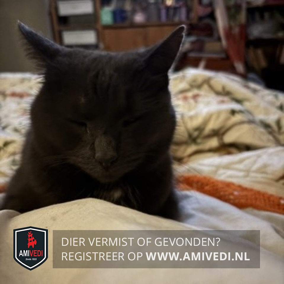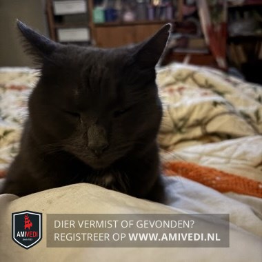 | Signalement | Een heel klein zwart poesje met een beetje wit onder de kin en een beetje wit op haar buik. |