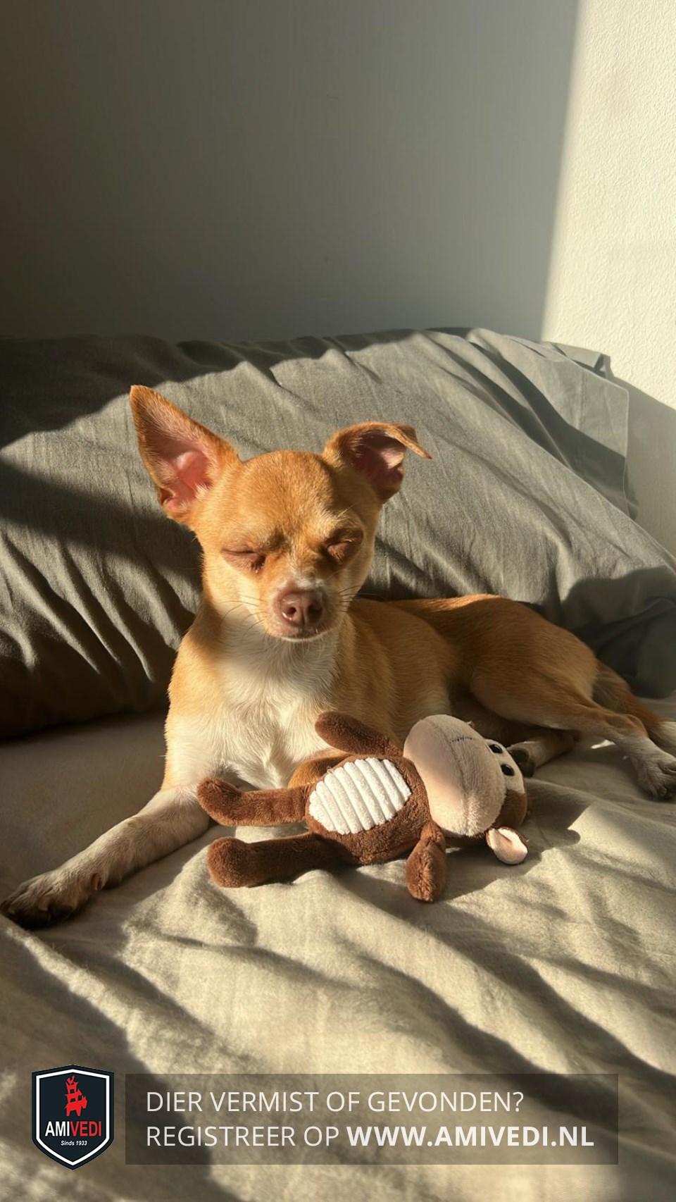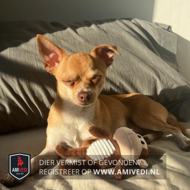 | Signalement | Bruine Chihuahua met een witte keel en borst, poten ook met wit |
