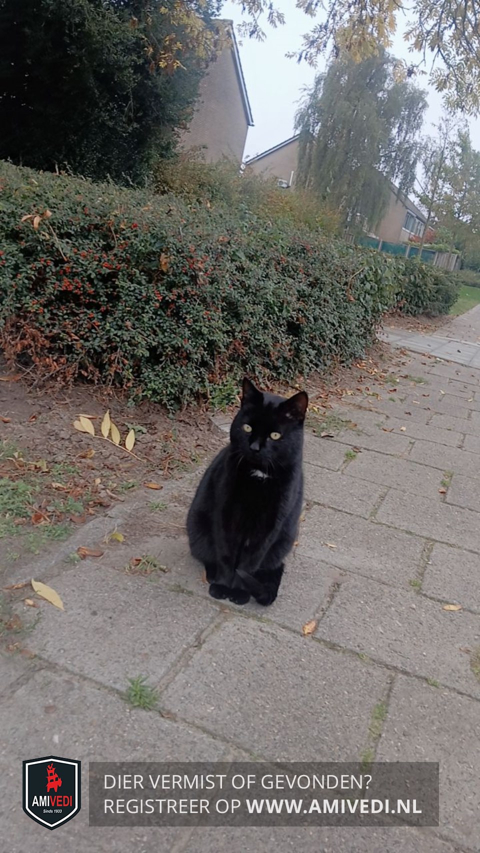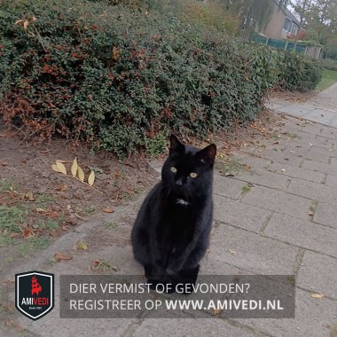 | Signalement | Zwart met witte plekken in de hals. Heeft een virus op dit moment erg ziek en medicatie dringend nodig |