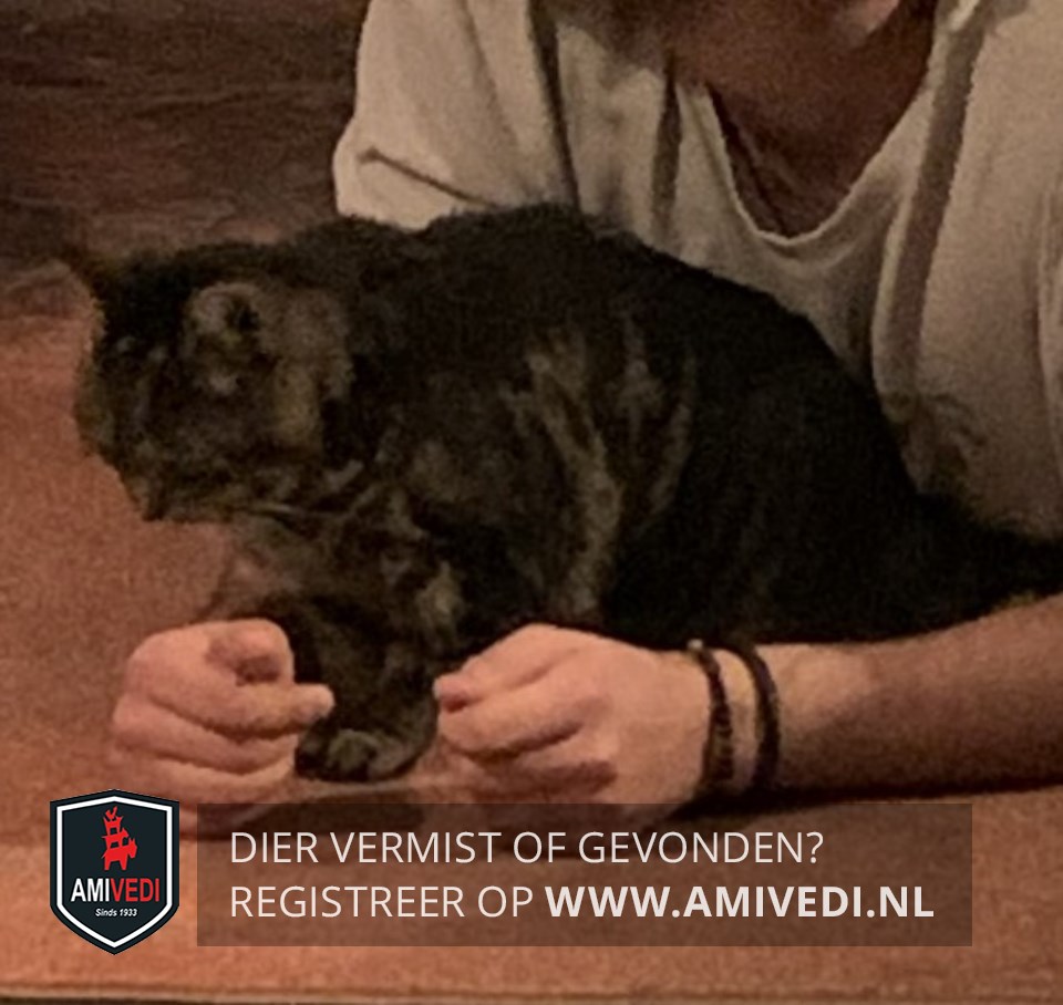 | Signalement | Zwart/grijs cypers. |