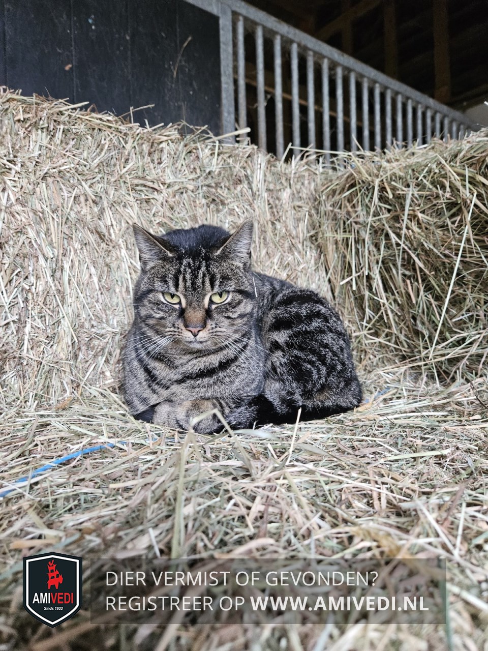 | Signalement | Volledig cypers bruin/zwart. Lichte randjes rondom beide ogen. Zachte vacht. |