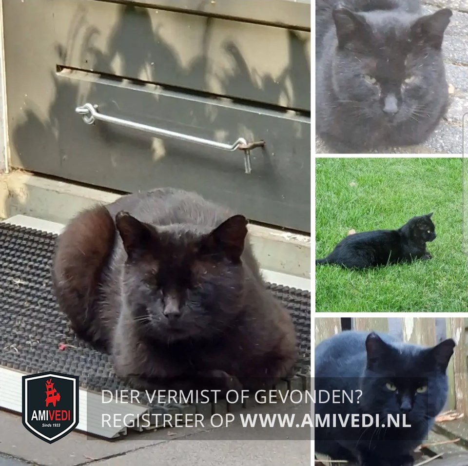 | Signalement | Egaal zwart.In het ene oor is een hapje uit en het andere oor is een "ezelsoor". |