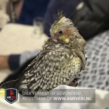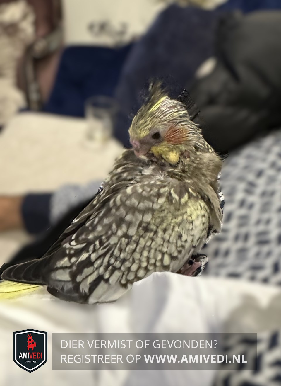 | Signalement | Valkparkietje in wit, geel en grijs met oranjige wangetjes; een van zijn teennagels is er af |