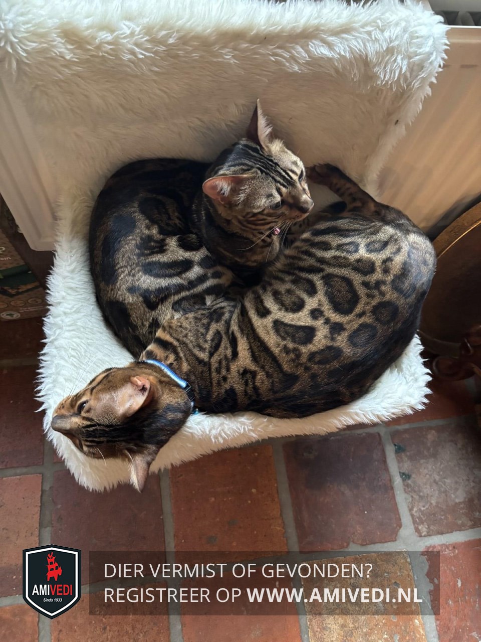 | Signalement | Slanke, jonge kortharige Bengaalse kater met warm goudbruine/caramelkleurige vacht en donkerbruine tot zwarte rozetten en strepen over het hele lichaam. Grijzige tinten tussen de patronen. Groen/geelgroene ogen. Kin, snuitje en buik iets lichter (crème/ivoor). Geringde staart met donkere punt. |
