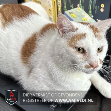 | Signalement | Voornamelijk wit met wat rode accenten. Een rode baan over het petje bij het linkeroor, rode vlek boven het rechteroog en vlekjes naast de neus aan beide zijden. Over de witte rug loopt een rode baan thv de schouders en een rode vlek op de onderrug. |