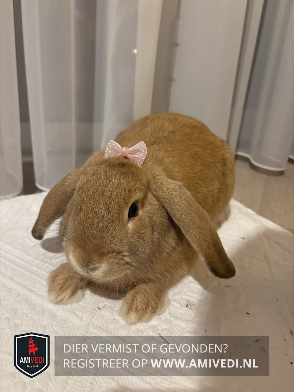 | Signalement | Beige/blond(rossig) Hangoor konijn. |