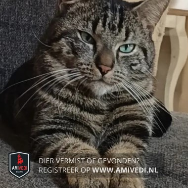 | Signalement | Cypers grijs/zwart gestreept.Witte kin.Van zijn voortand is de helft afgebroken. |