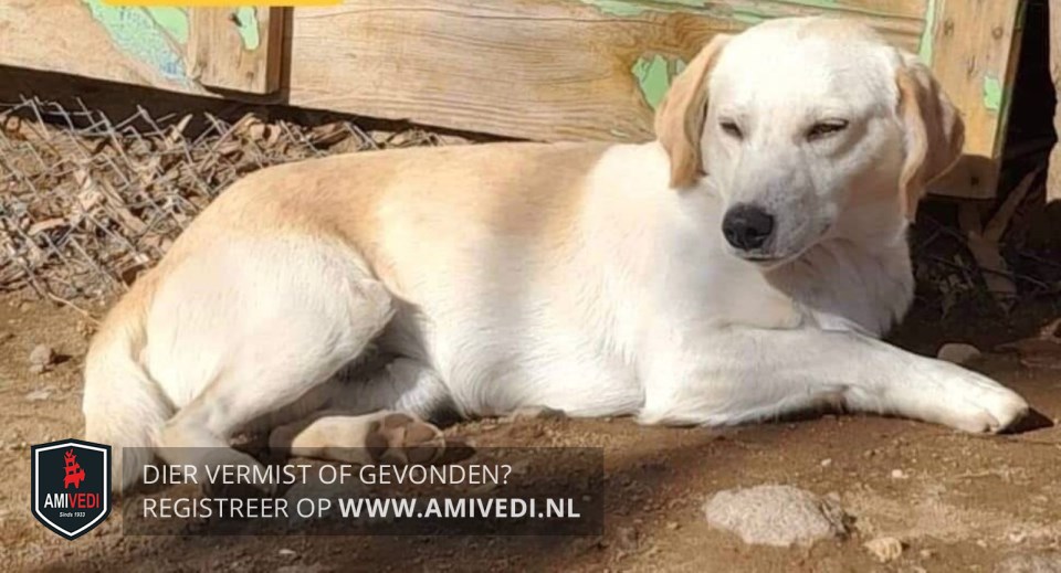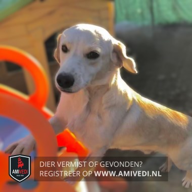 | Signalement | Kleine labrador mix, licht creme tot beige/bruin over het lijfje, op de oren en bij de aanzet van de staart. LET OP: angstig dier, NIET zelf benaderen, locatie doorgeven aub |