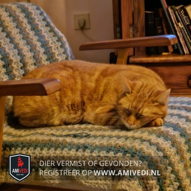 | Signalement | Otje is oranje met lange poten en lange staart. Is aanhankelijk en geeft heel graag kopjes. Ot is een huiskat die van onverwachte geluiden snel schrikt. |