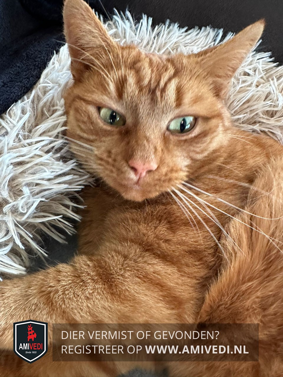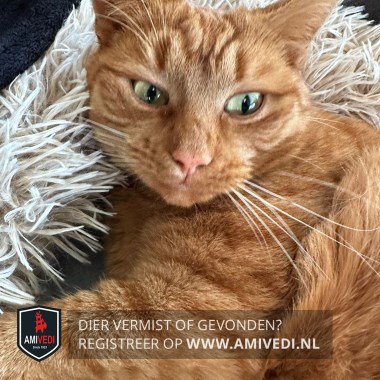 | Signalement | Cypers poes rood/ oranje getijgerd met beetje wit in ringen patroon aan uiteinde staart |