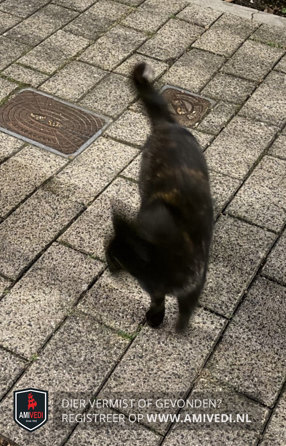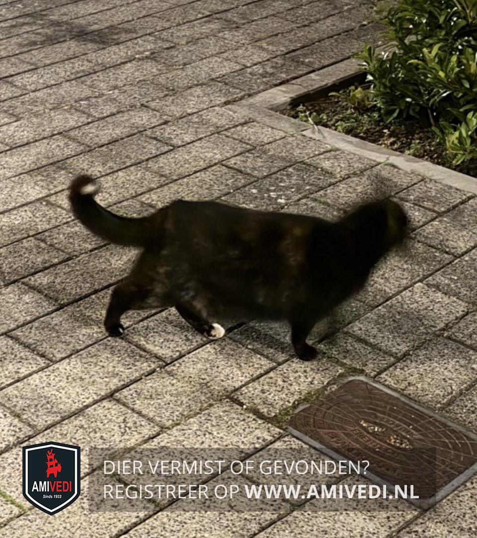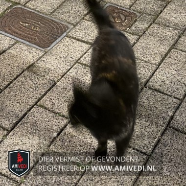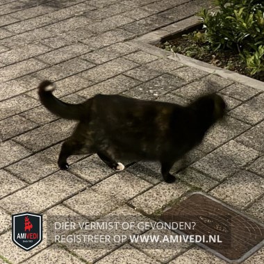 | Signalement | Schildpad poes. Zwart/bruine vacht met een wit puntje op de staart en achterpoten witte teentjes. |