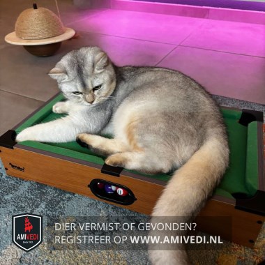 | Signalement | Merlin is een zilvergrijze Britse Korthaar met groene ogen en een dikke, pluizige staart. Kop grijs, beige snoet, kleine oren. Voorpoten licht, achterpoten beige. Rug grijs/beige gemêleerd. Binnenkat. |