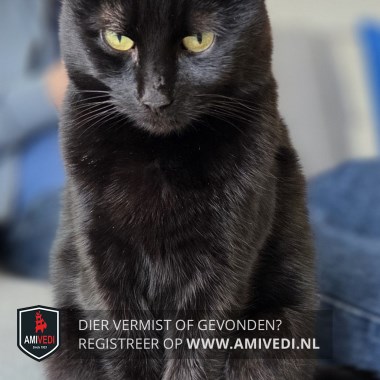 | Signalement | Kort zwart haar en glanzende vacht, klein beetje wit tussen de achterpoten op de buik. Verder zwaait hij zijn staart altijd helemaal naar achteren door als je hem aait, bijna plat op zijn rug. |