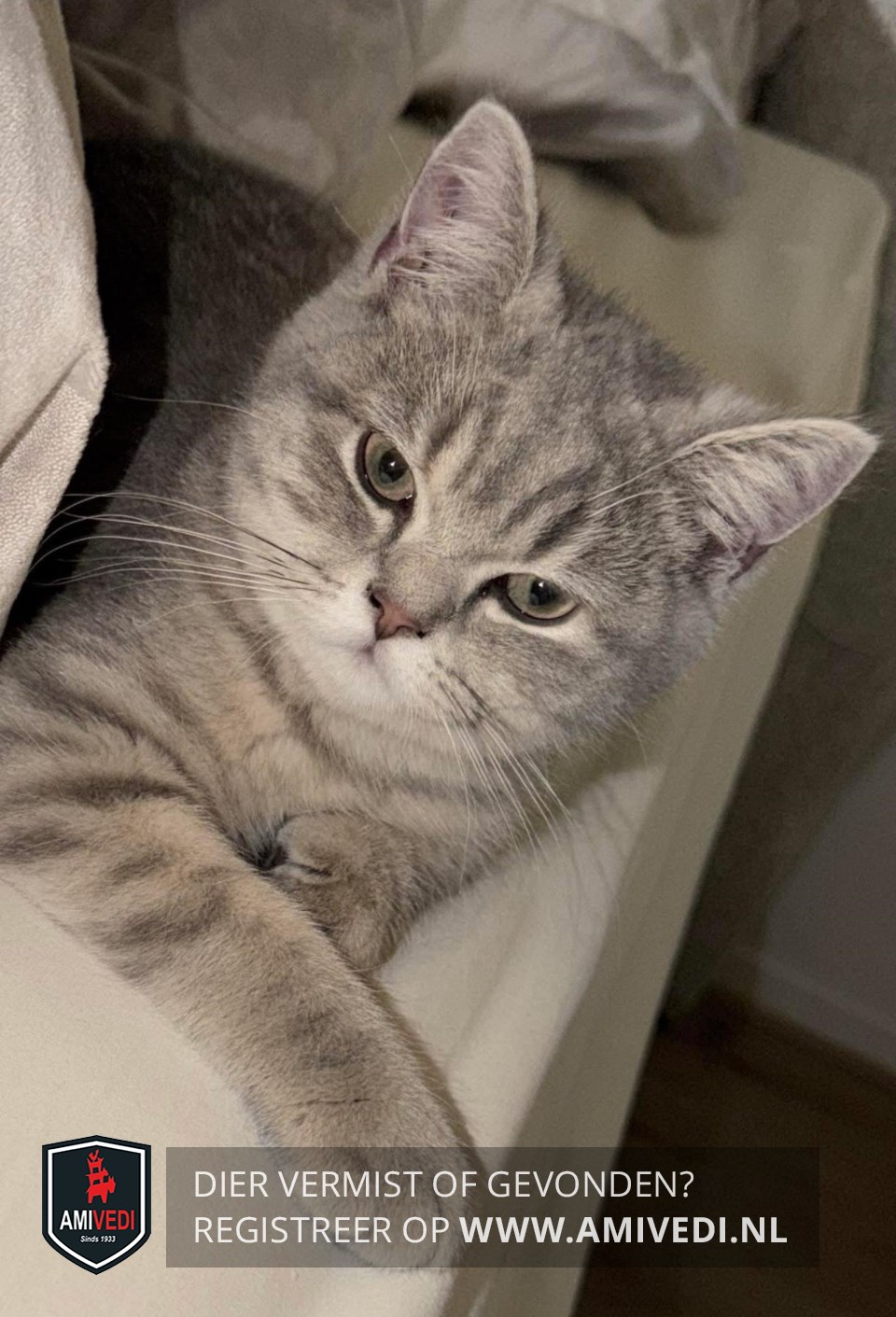 | Signalement | Cypers grijs-lilac/beige. Wit rondom de bek en witte kin. Lichte lijntjes rondom de ogen. Zachte vacht. |