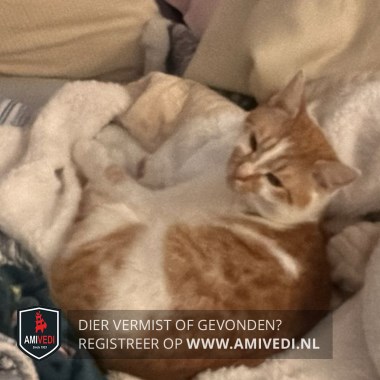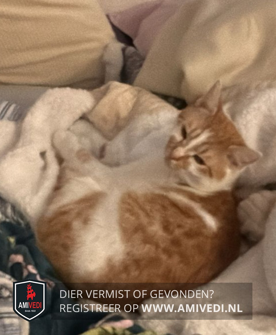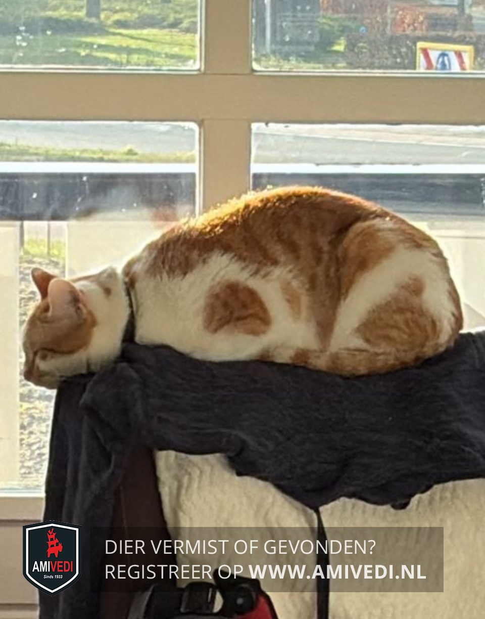 | Signalement | Cypers rood/oranje met wit. Cypers rood/oranje bovenop de kop, incl. de oren. Rood/oranje loopt door naar de ogen. Vanaf voorhoofd een smalle witte streep tussen de ogen naar de neus. Rondom de neus rood/oranje. Beide wangen wit en loopt door naar de nek. Witte bef en borst. Rood/oranje rug en staart. Zijflanken wit met rood/oranje vlekken. Linker voorpoot wit met een rood/oranje vlekje aan de voorzijde. Stugge vacht. |