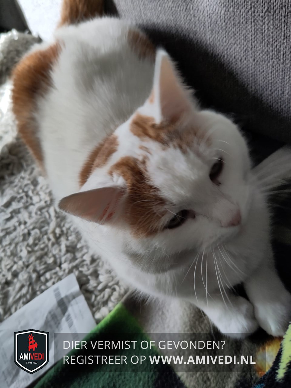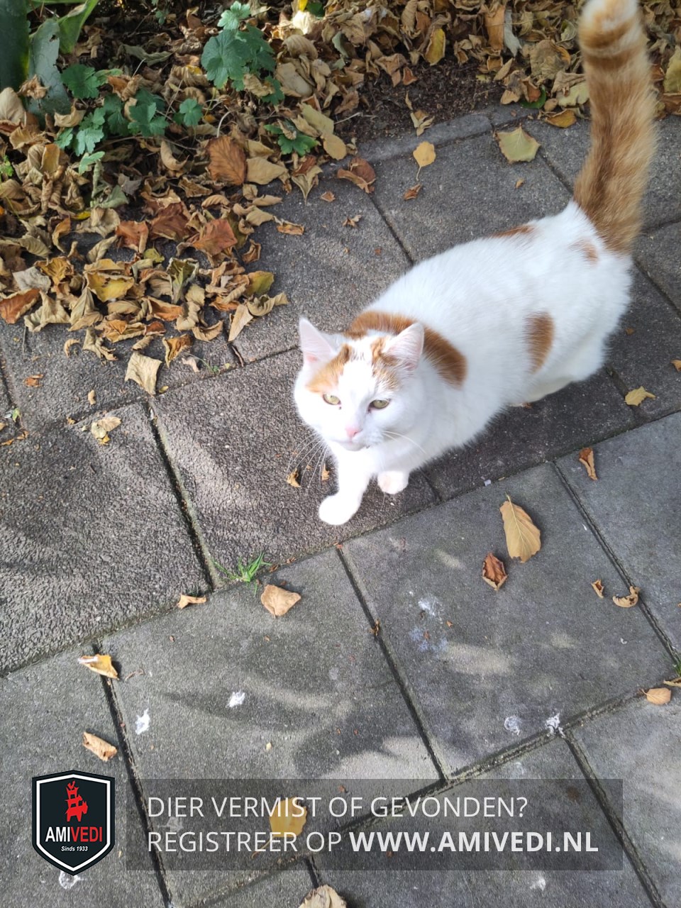 | Signalement | Wit met rood/oranje vlekken. Klein met knik in staart aan het einde. |