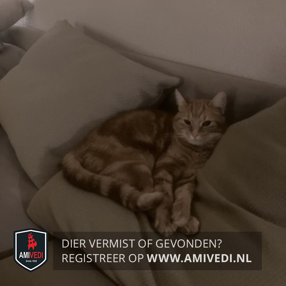 | Signalement | Rood/ oranje gestreepte gecastreerde jonge kater |