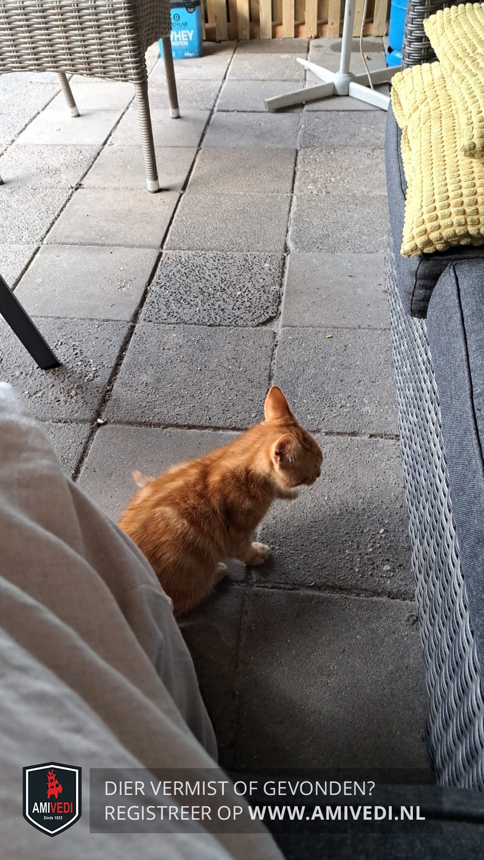 | Signalement | Cypers rood katertje, niet heel groot. Voorpoot rechts een witte voet. |