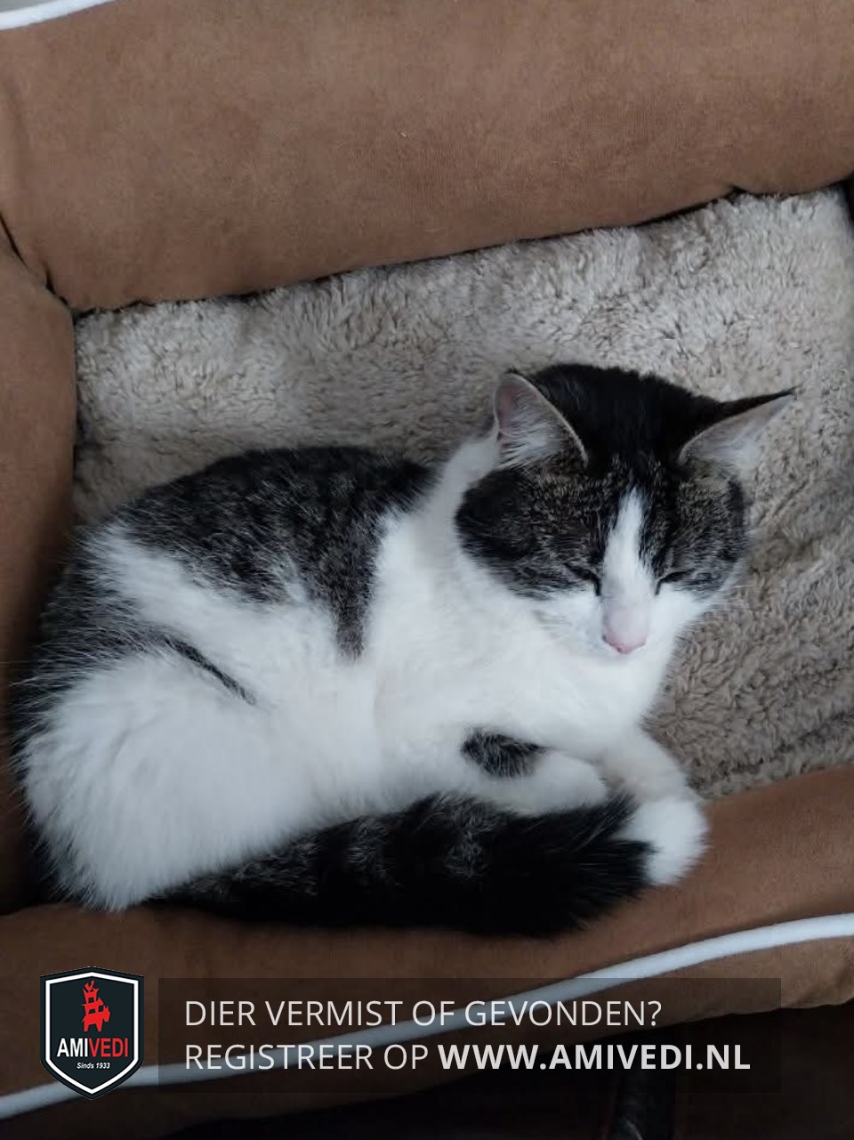 | Signalement | Wit met cypers op de kop, rug en staart. Verder veel wit. Neus is ook wit. Een grijze vlek op haar rechter voorpoot |