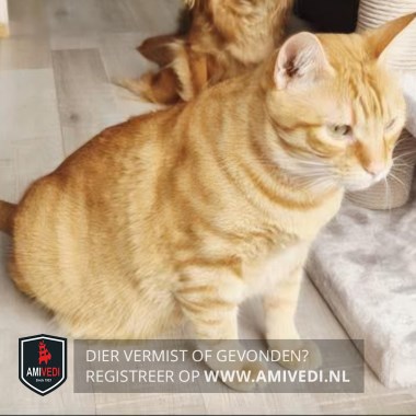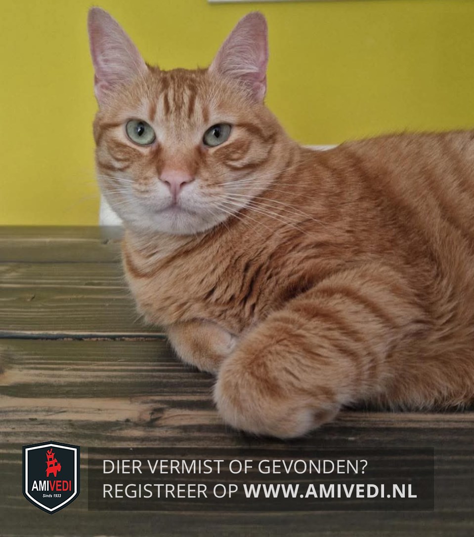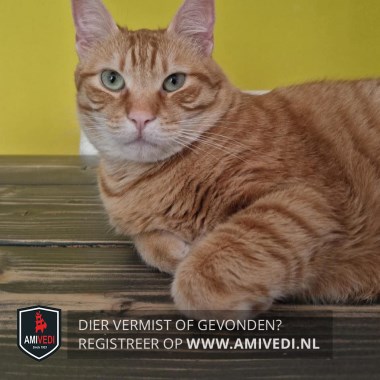 | Signalement | Cypers rode kater, heeft een halve staart. |