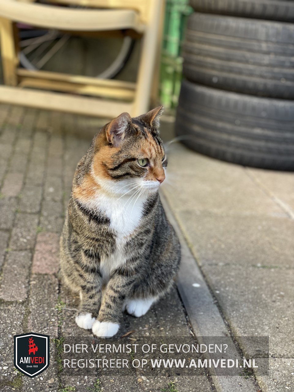 | Signalement | Lapjes vacht, klein poesje, witte bef, witte sokjes |
