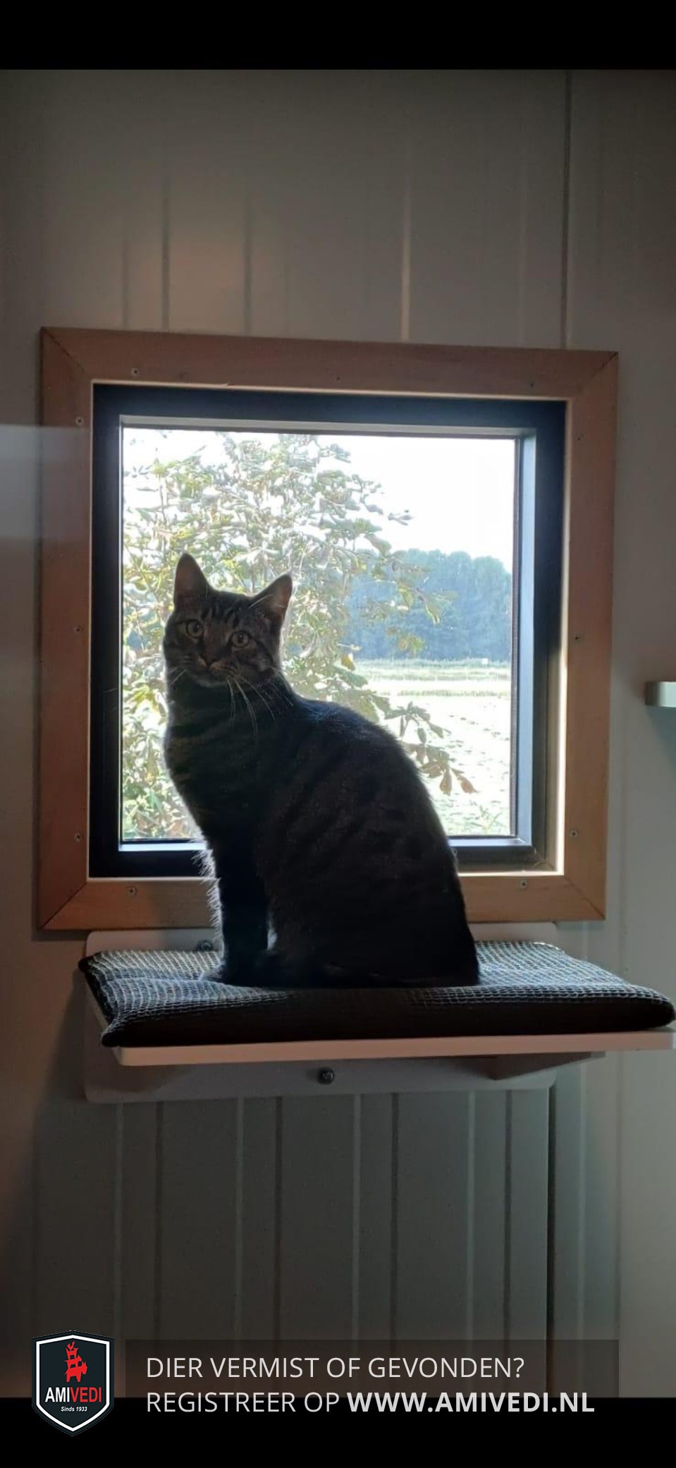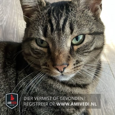 | Signalement | Grijs, bruin, zwart gestreepte kat. Soms wat schuw naar vreemde mensen. Echte huiskat en is geen held buiten en snel bangig waardoor hij normaal altijd rond het huis blijft. |