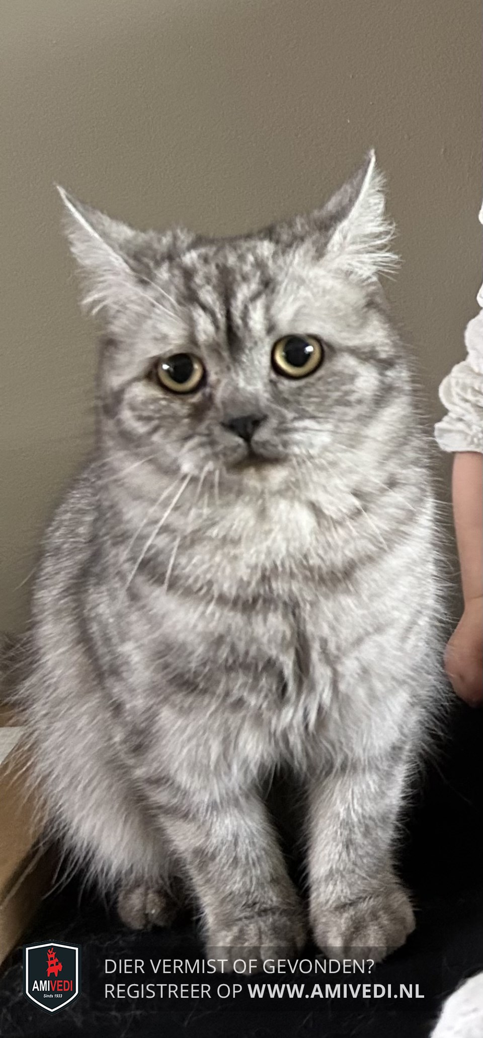 | Signalement | Kruising Brits Korthaar met Brits Langhaar. Geheel grijs/wit gestreept. Klein van formaat. |