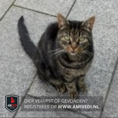 | Signalement | Wit randje onder de ogen, wit kinnetje. Zwarte 'M' op het voorhoofd. Dikke zwarte strepen. |