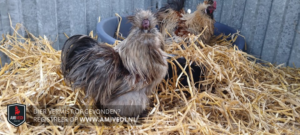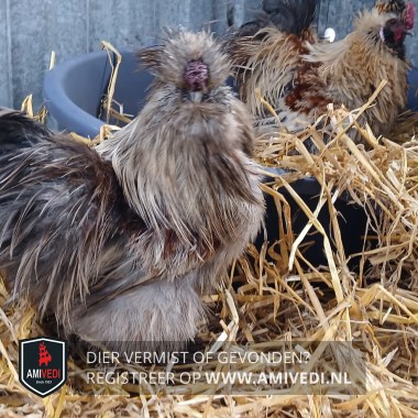 | Signalement | Volledig grijs zijdehoen haantje, met donkergrijze staart |