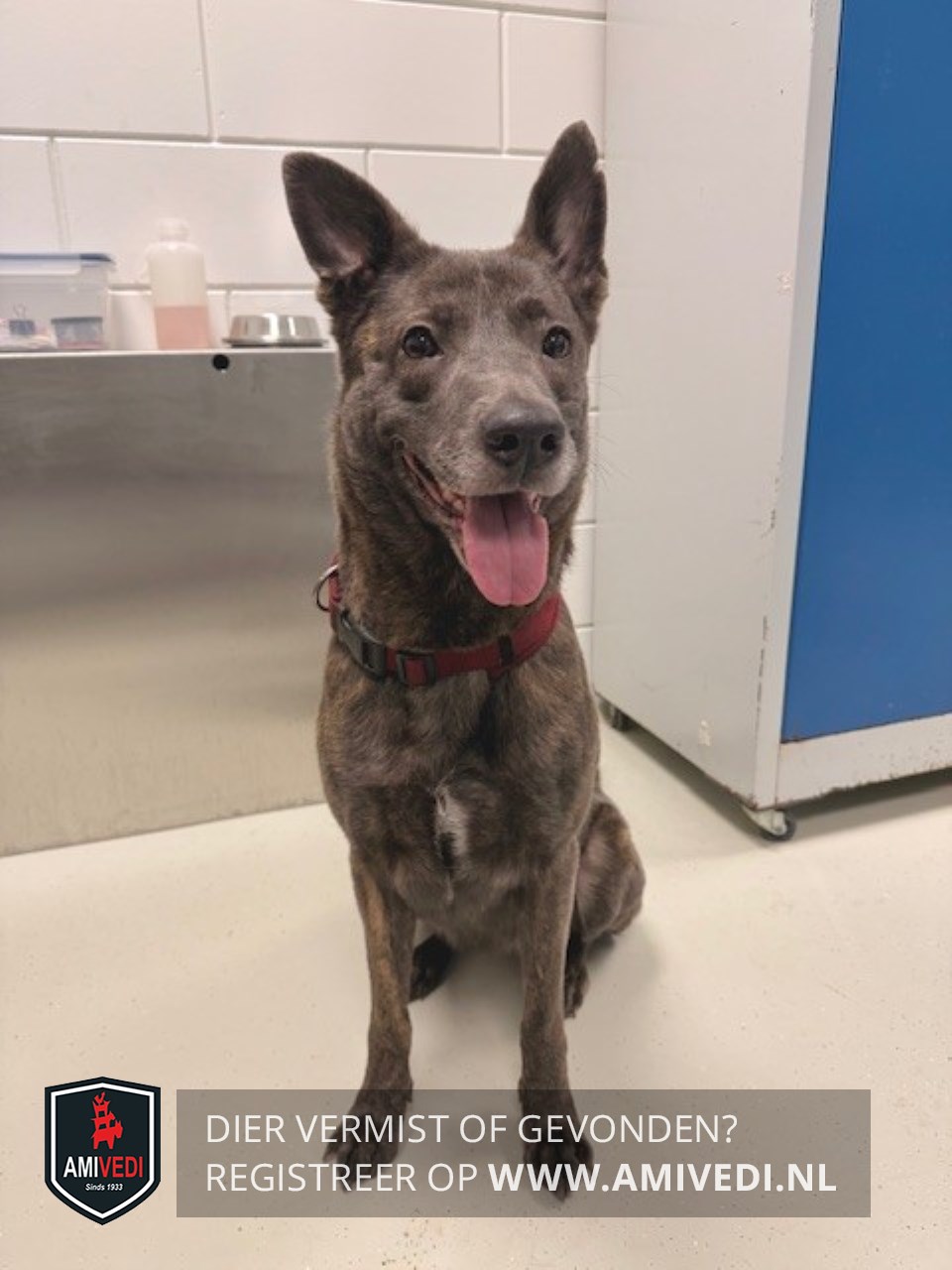 | Signalement | Kruising herder. Blauw crème kleurig. Witte vlek op de borst. Hapje uit het linkeroor. |