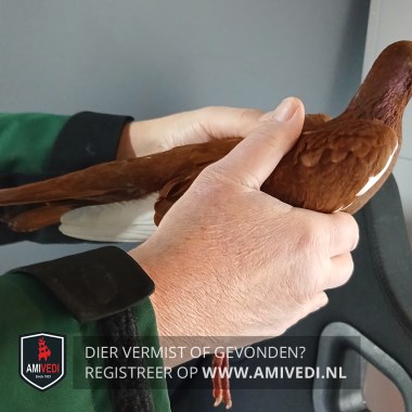 | Signalement | Bruine sierduif met een witte rand aan de vleugels |
