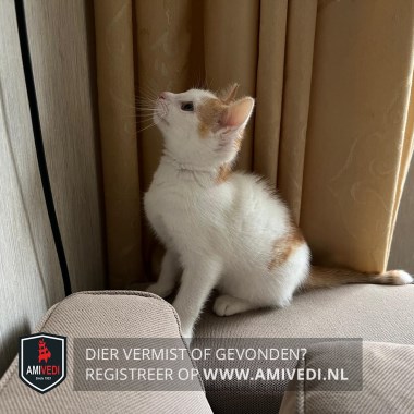 | Signalement | Wit/oranje. Oranje rond oren. Oranje vlekken op rug. Wit staartpuntje. |